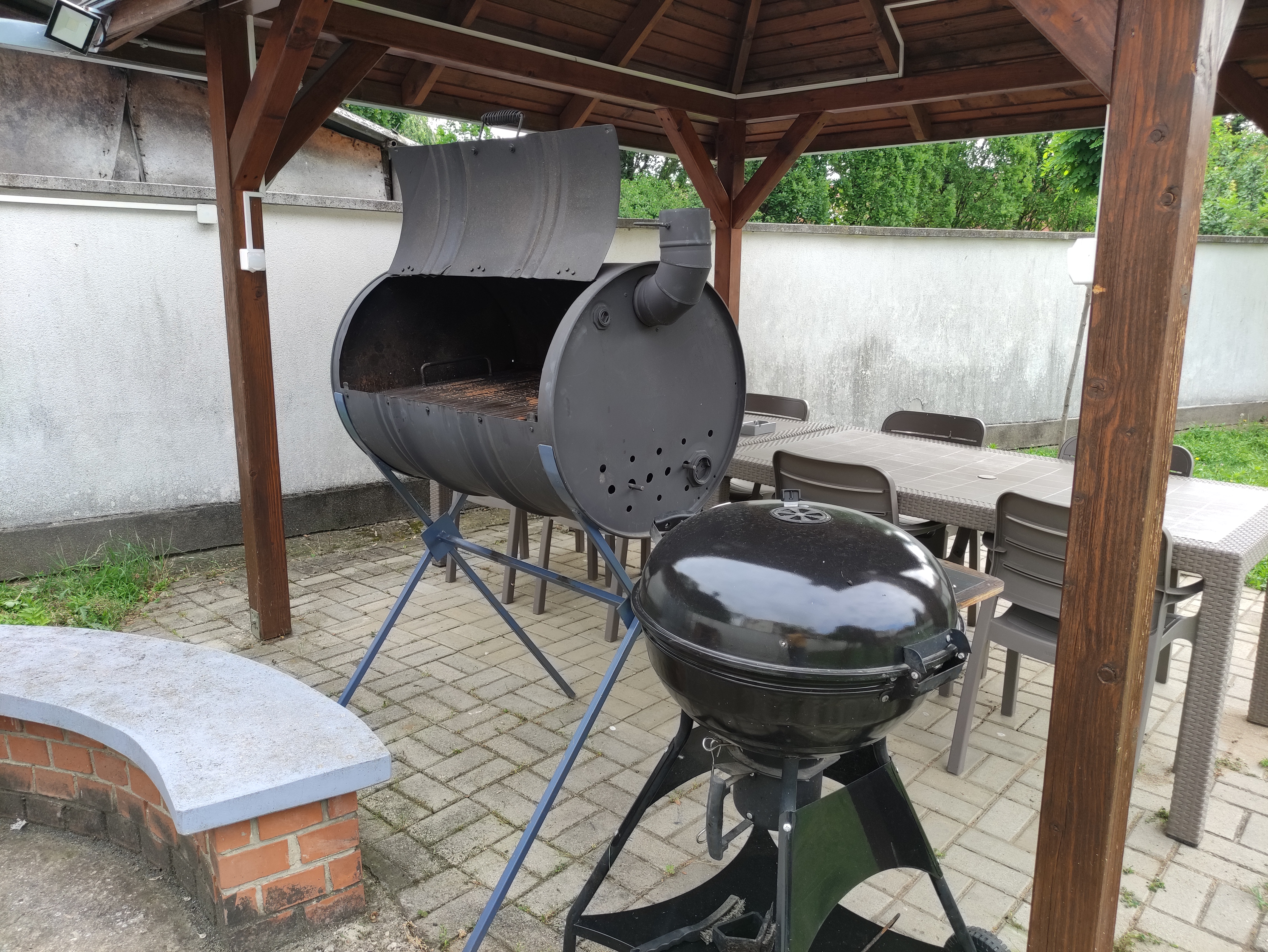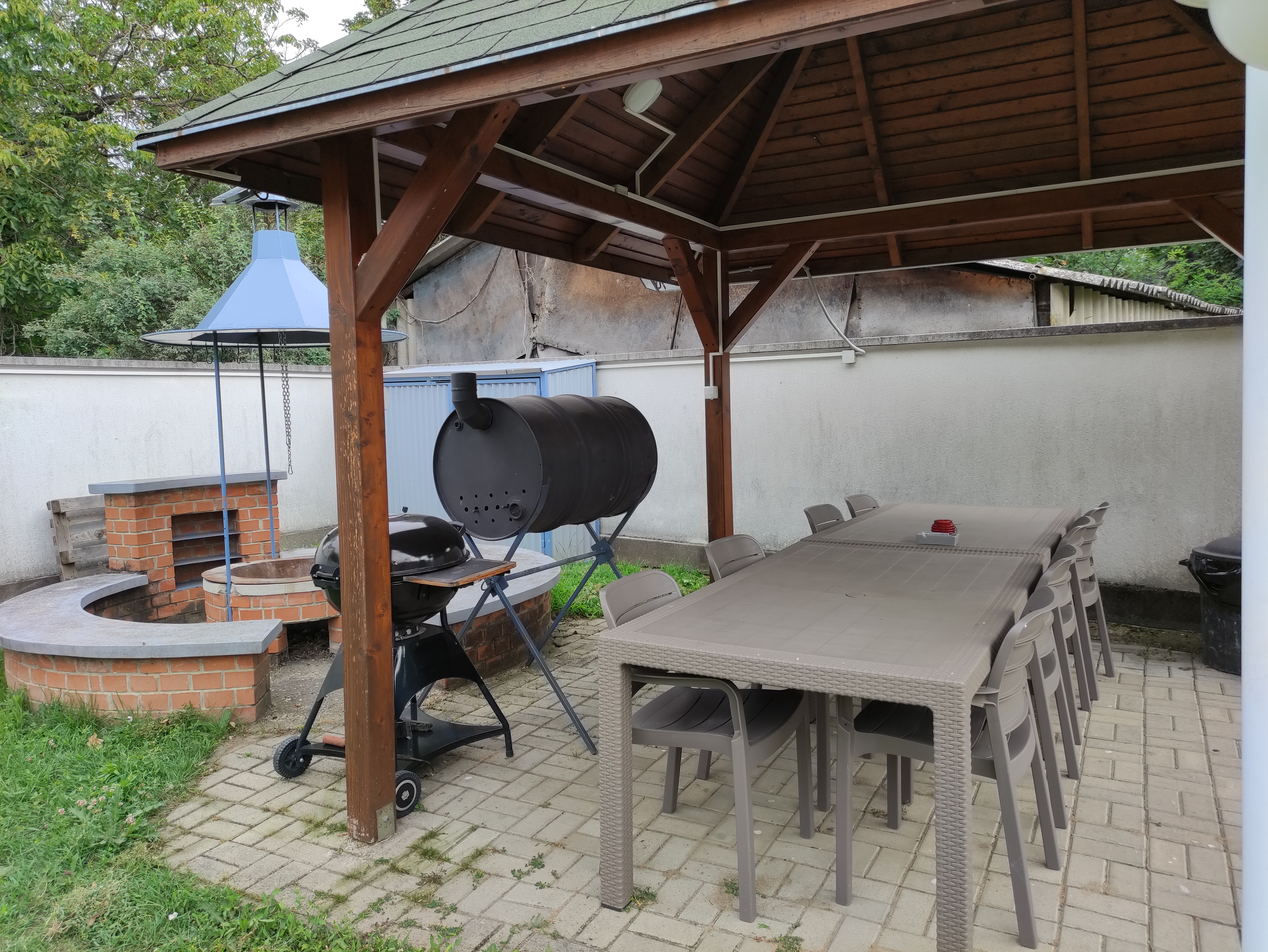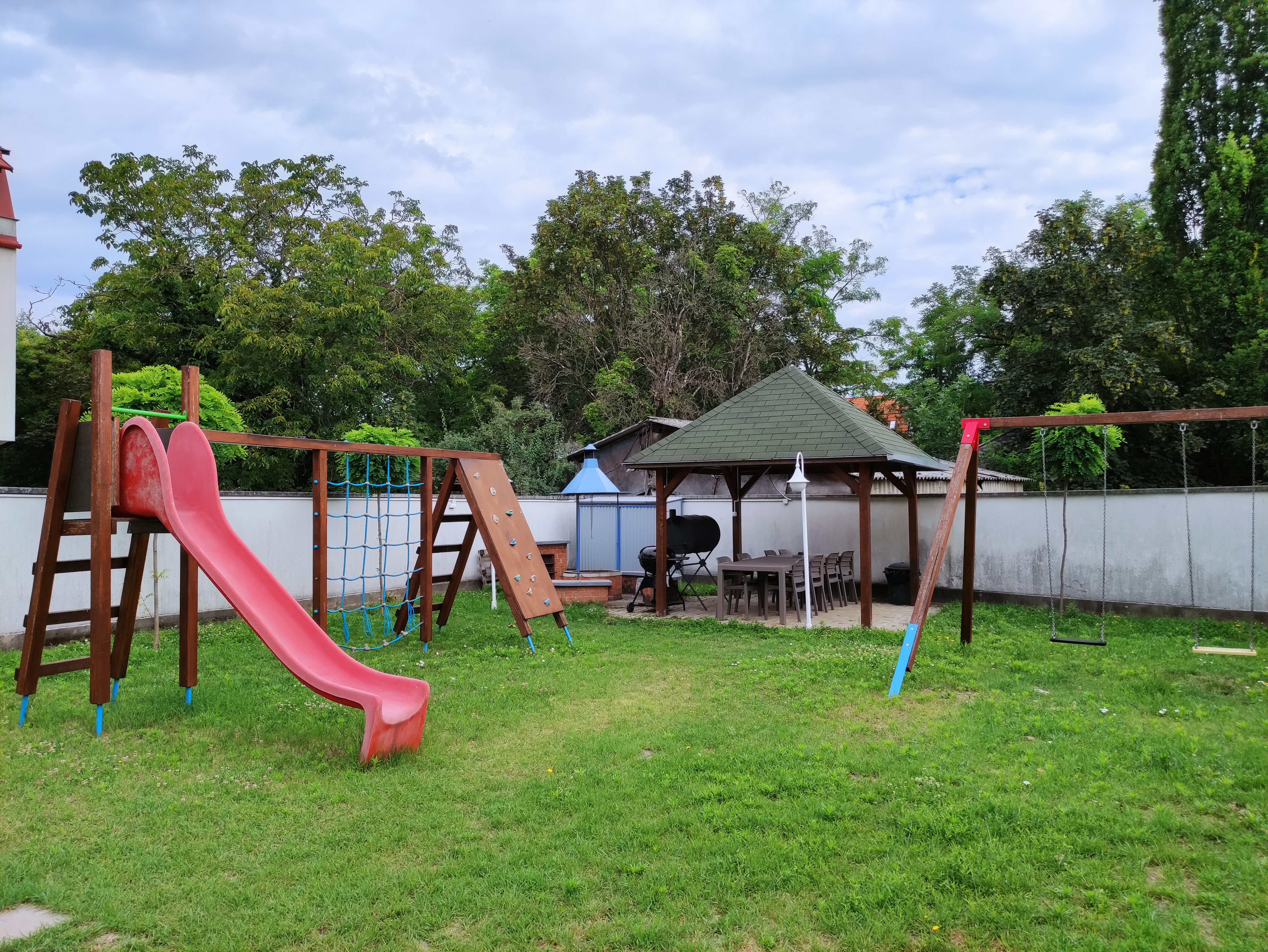 Nimród Vendégház își așteaptă oaspeții care doresc să stea și să se relaxeze în partea centrală a orașului Hajdúszoboszló, într-un mediu familial calm. Intrarea laterală la baia de pe plajă este la doar 300 m de casa noastră de oaspeți. Camerele noastre confortabile, cu aer condiționat, sunt dotate cu băi, frigidere și televizoare, dintre care 3 camere pot fi dotate cu paturi suplimentare. Oaspeții noștri au la dispoziție o chicinetă comună, dotată cu cuptor cu microunde și fierbător, la ambele niveluri ale clădirii. La parter există o bucătărie comună și o sufragerie cu o terasă acoperită. Oferim oaspeților noștri posibilitatea de a găti și prăji slănină în curtea noastră amenajată. Oaspetii nostri au biciclete la dispozitie pentru inchiriere.