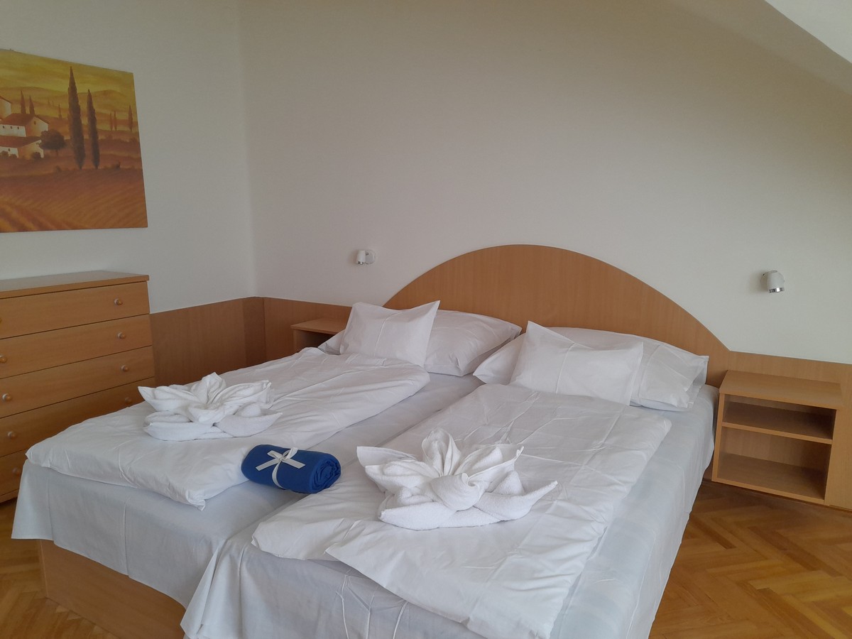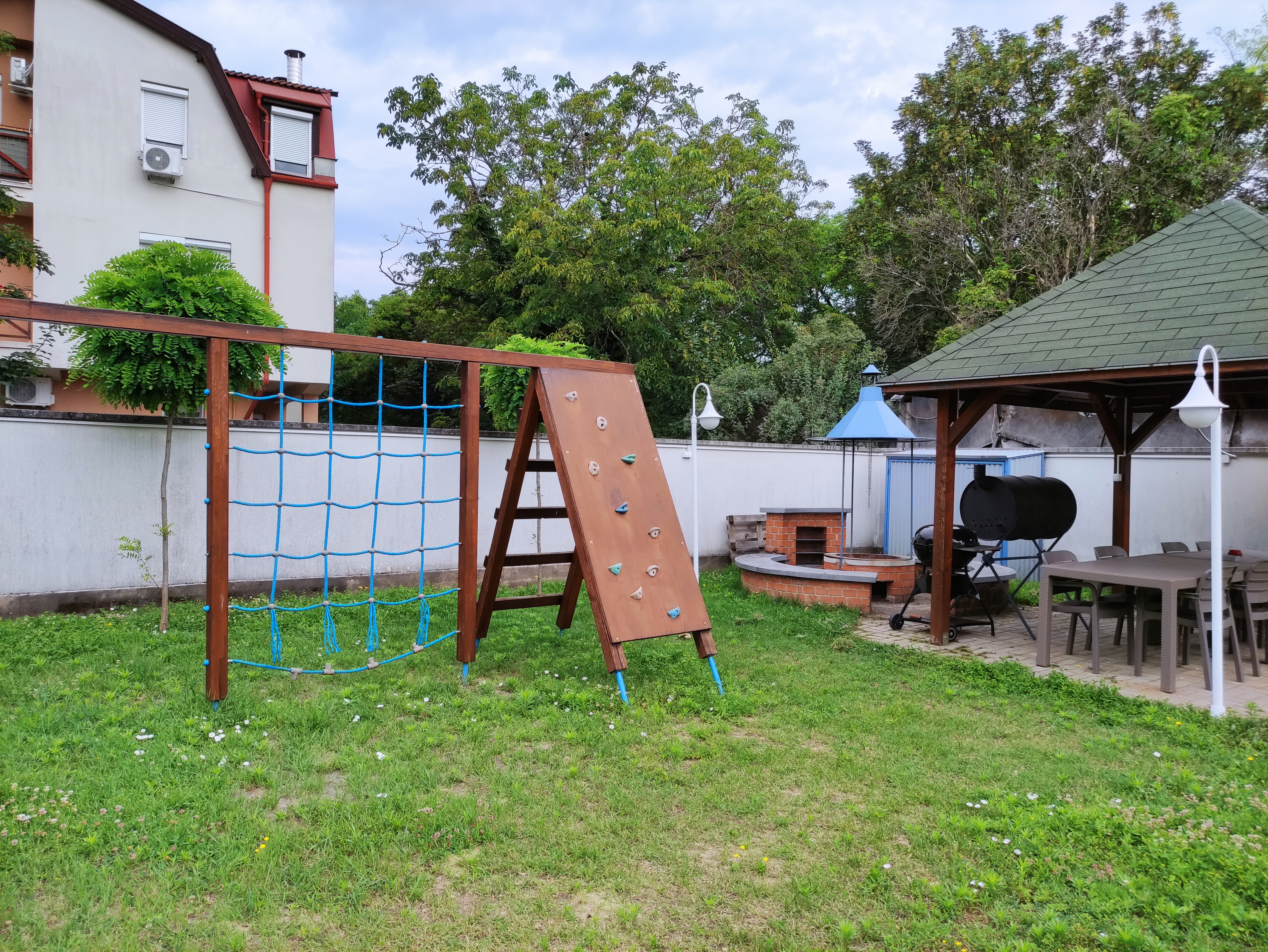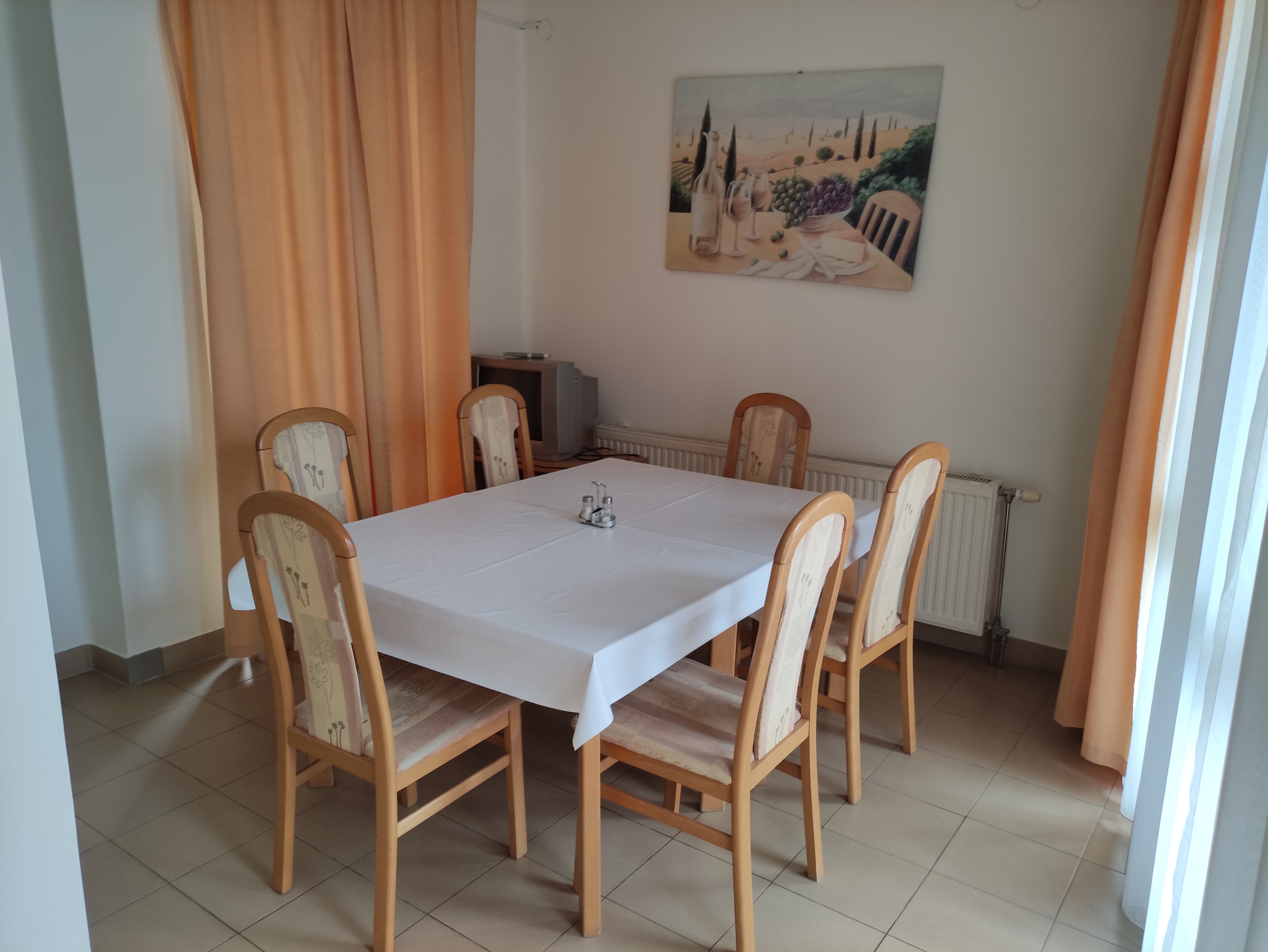 Nimród Vendégház își așteaptă oaspeții care doresc să stea și să se relaxeze în partea centrală a orașului Hajdúszoboszló, într-un mediu familial calm. Intrarea laterală la baia de pe plajă este la doar 300 m de casa noastră de oaspeți. Camerele noastre confortabile, cu aer condiționat, sunt dotate cu băi, frigidere și televizoare, dintre care 3 camere pot fi dotate cu paturi suplimentare. Oaspeții noștri au la dispoziție o chicinetă comună, dotată cu cuptor cu microunde și fierbător, la ambele niveluri ale clădirii. La parter există o bucătărie comună și o sufragerie cu o terasă acoperită. Oferim oaspeților noștri posibilitatea de a găti și prăji slănină în curtea noastră amenajată. Oaspetii nostri au biciclete la dispozitie pentru inchiriere.