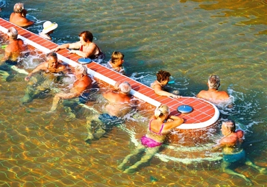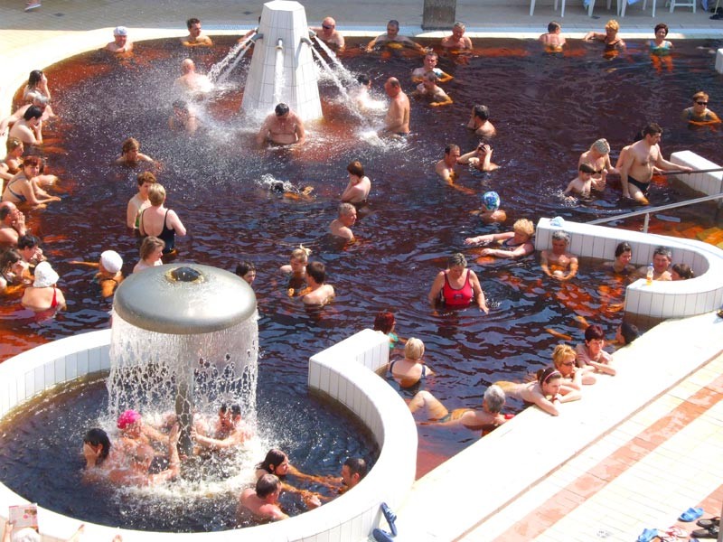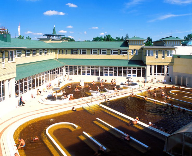 De la deschiderea ștrandului cu plaja de nisip din anul 1927, acesta a suferit schimbări majore. Grație programelor de reamenajare continue, ștrandul își asteaptă vizitatorii cu trei piscine acoperite, toate umplute cu apă de temperaturi diferite, iar în exterior cu alte patru piscine dotate cu echipamente spa. Datorita lucrărilor complete de renovare din 2002, clădirea a fost integral reînnoită. Această reînnoire a clădirii ștrandului termal, extinderea cabinetelor pentru tratament, precum și crearea locurilor de odihnă oferă condițiile ideale pentru relaxarea și vindecarea oaspeților.